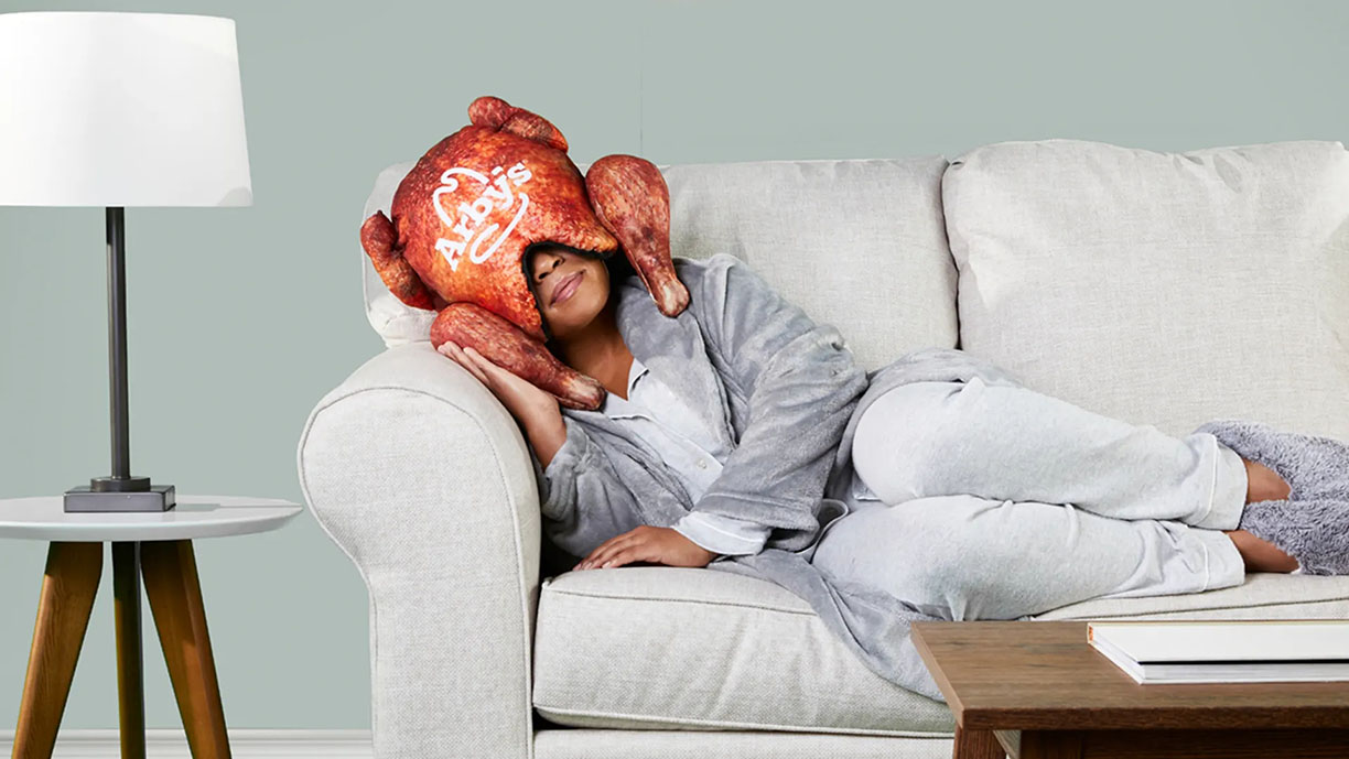 而且你会错的。事实证明,火鸡枕头是真的,这是快餐连锁店Arby的 新系列火鸡三明治的促销活动 。外形真实,舒适的防毒头盔是解决常见问题的解决方案-食用过多的火鸡会昏昏欲睡。尽管火鸡确实包括诱导睡眠的氨基酸色氨酸(在Arby的广告中提到),但是火鸡中的氨基酸含量不足以带入Zs。确实是 出于努力。无论哪种方式,火鸡枕头都保证在睡前睡个好觉,提供柔软的胶囊,帮助您摆脱世界和您烦人的家庭的困扰。