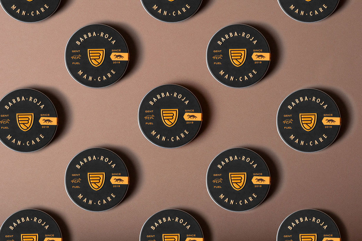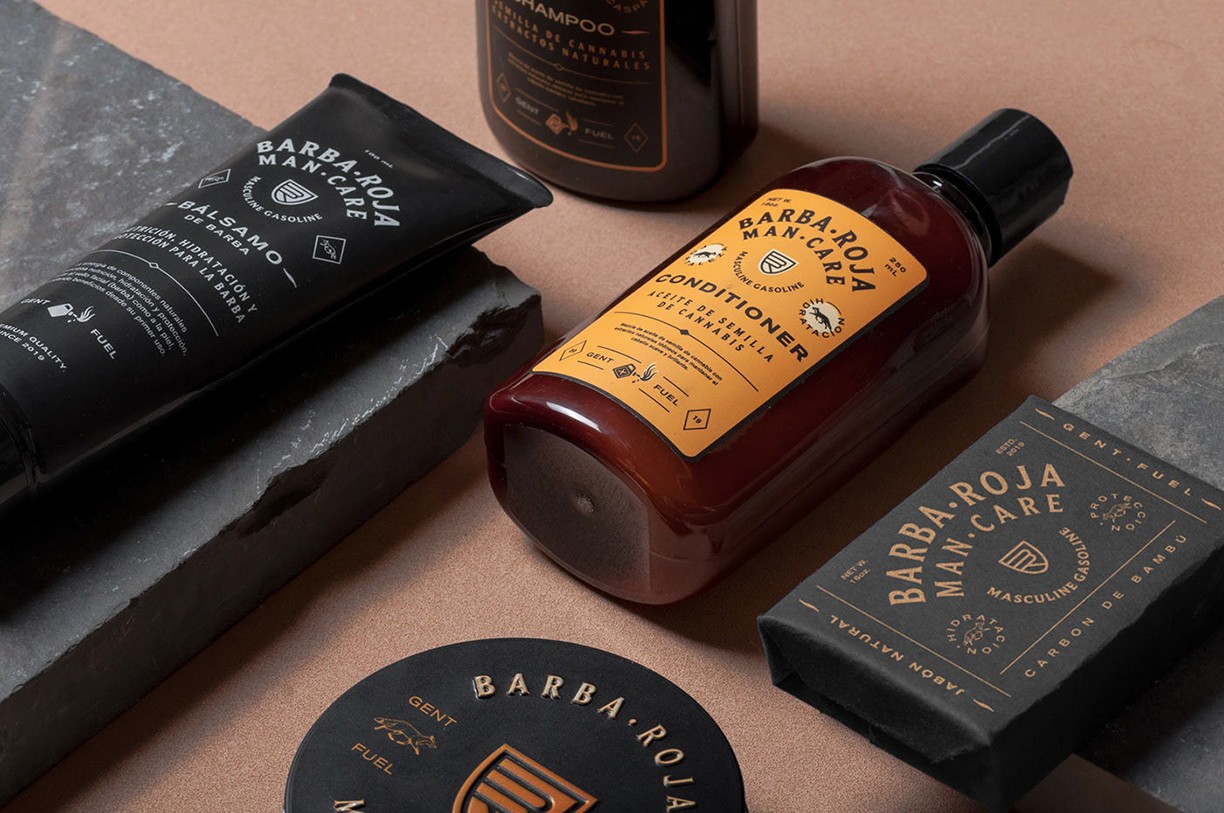 高速,公路和火灾激发了我们发展MASCULINE GASOLINE概念的能力,这使我们为Barba Roja Man Care建立了完整的形象。